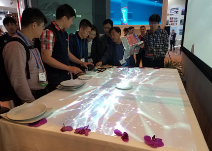 在創(chuàng)新技術(shù)領(lǐng)域中,奧圖碼領(lǐng)先的移動跟隨投影技術(shù)也在展會中與用戶見面,作為已在大量酒店、展覽館、餐廳、藝術(shù)展等場景中應(yīng)用的成熟技術(shù),奧圖碼移動跟隨投影解決方案提供了生動有趣的動態(tài)投影交互體驗(yàn),在浪漫餐廳、個性藝術(shù)館中,由奧圖碼技術(shù)帶來的逼真情景,實(shí)現(xiàn)了投影領(lǐng)域的全新突破。