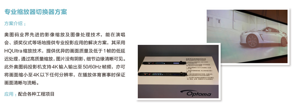 奧圖碼在投影機(jī)全面進(jìn)入以方案為先的時(shí)代,努力打造更為完整的應(yīng)用解決方案,服務(wù)中國(guó)市場(chǎng)的廣大客戶。 |