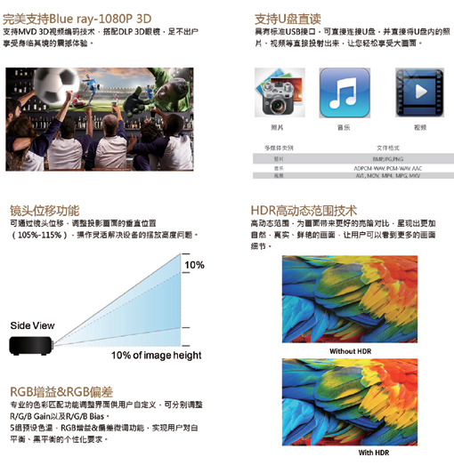 3D技術(shù)等技術(shù),將投影機豐富程度全面提升,讓用戶無后顧之憂。