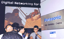 同時,松下公司推出的基于DLP顯示技術(shù)的高端投影設(shè)備也倍受矚目,在展臺的中央位置,由兩臺疊加在一起的PT-9600E型(3片DLP顯示方式;單機亮度達到12000ANSI流明)投影機投射了一個巨大的畫面,組成松下的High