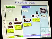 松下全球投影機(jī)事業(yè)部部長(zhǎng)島岡首先對(duì)2005年投影機(jī)行業(yè)的情況做了總結(jié),2005年全球投影機(jī)廠商共有三十多家。松下DLP專(zhuān)業(yè)系統(tǒng)投影機(jī)在2005銷(xiāo)售量的增長(zhǎng)為124%,在2005年5000流明以上的市場(chǎng)中松下的市場(chǎng)占有率為33%。松下在7000流明亮度的投影機(jī)PT-D7700以及在5000流明亮度的投影機(jī)PT-FD500在相應(yīng)檔次的投影機(jī)市場(chǎng)里的占有率是最高的。