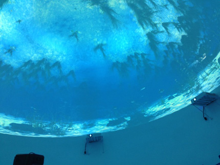 項(xiàng)目說明:8臺(tái)投影融合,投射在室內(nèi)球形圓頂上,投射出清晰銳利的畫面,讓人猶如置身水底,可生動(dòng)直觀地觀察水上植物的生長(zhǎng)環(huán)境及過程。