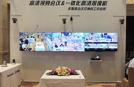 本套系統(tǒng)由安恒集團(tuán)所代理的松下一體化高清攝像機(jī)進(jìn)行現(xiàn)場攝像,再運(yùn)用影像傳輸系統(tǒng)KX-VC1600實(shí)現(xiàn)影像畫面的同步傳輸,再由松下超窄邊液晶拼接屏TH-55LFV5C顯示成像,使觀眾看到清晰且同步的視頻畫面。