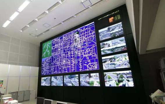 該交通監(jiān)控中心的鑲嵌式顯示設(shè)備大概用了30