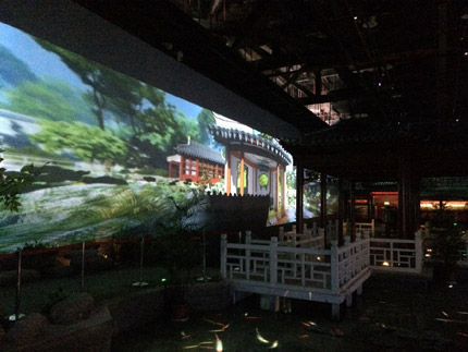 其中園林中國展項尤其讓人流連忘返。這個展項共應(yīng)用了16臺松下單芯片DLP投影機PT-FDZ97C,8500流明的高亮度及動態(tài)光圈實現(xiàn)10000:1的高對比度,令影像層次更加豐富,細(xì)節(jié)再現(xiàn)更加栩栩如生:各類插花、盆景、苗木與室內(nèi)建筑風(fēng)格相得益彰,美不勝收?煽啃詷O強的Panasonic特有雙燈源光學(xué)系統(tǒng),即使在一只燈泡出現(xiàn)故障的時候也不會中斷顯示,讓觀眾盡情享受園林美景。特有的DIGITAL