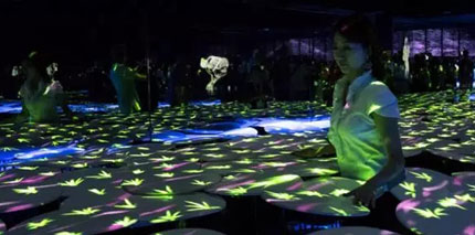 為了在平臺(tái)上顯示瀑布畫(huà)面,制作團(tuán)隊(duì)采用了由6臺(tái)PT-FDZ97C投影機(jī)和反射鏡組成的投影系統(tǒng)。該互動(dòng)裝置在瀑布上投射出多種圖像。要呈現(xiàn)流水之上的圖像,需要投影機(jī)具備很高的分辨率。PT-FDZ97C擁有卓越的色彩還原性和高對(duì)比度,能夠在黑暗的空間呈現(xiàn)絢麗的藍(lán)色瀑布影像。 |