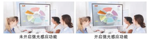 按下遙控器按鈕開(kāi)啟強(qiáng)光感應(yīng)功能,投影圖像便可自動(dòng)調(diào)節(jié)至理想觀看效果,明亮環(huán)境下投影圖像仍然清晰可見(jiàn)。