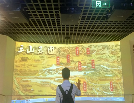 海淀通史陳列展館分為:序廳地幕電子沙盤(pán)展館、水潤(rùn)京華電子沙盤(pán)展館、救亡圖存觸摸互動(dòng)透明屏幕展館,三個(gè)展館共使用了19臺(tái)松下PT-FDX92C單芯片DLP工程投影機(jī)。海淀通史陳列館不僅可以提供參觀展覽,更為參觀者提供了與歷史文化交流的機(jī)會(huì)。海淀通史陳列館使用的每一臺(tái)投影機(jī)都要求有高畫(huà)質(zhì)、低噪音、靈活的系統(tǒng)功能、高可靠性和易維護(hù)性等強(qiáng)大的功能。