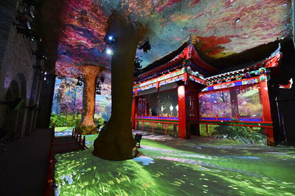 無極展廳采用CAVE全息投影,此展示手段打破常規(guī)的實物展示手段,在真實的空間里營造出亦幻亦真、如夢如幻的立體影像,清晰度及色彩還真度高,