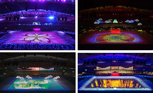 山東省第二十四屆運(yùn)動(dòng)會(huì)開(kāi)幕式于青島市民健身中心隆重舉行。開(kāi)幕式共分為暖場(chǎng)部分、儀式部分和大型文體展演《躍動(dòng)新時(shí)代》三個(gè)部分組成。其中,引進(jìn)了先進(jìn)地面互動(dòng)投影技術(shù)的大型文體展演《躍動(dòng)新時(shí)代》賺足了人們的眼球,科技感十足的聲光手段與現(xiàn)場(chǎng)表演者的巧妙配合,讓觀眾們嘖嘖稱(chēng)奇。