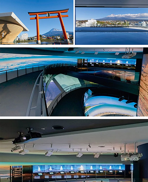 它由三個(gè)展廳組成,分別是展覽廳、北廳和西廳,令人印象深刻的展廳形似倒立的“富士山”。各種展出形式讓來自日本國(guó)內(nèi)外的游客充分感受富士山的魅力并能學(xué)習(xí)到很多知識(shí)。大量的松下激光投影機(jī)和液晶顯示器作為這次展示的核心工具,向幾乎全年齡層的游客傳達(dá)著富士山的美和吸引力所在。