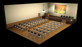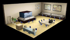 使用多臺(tái)三洋液晶工程投影機(jī)PLC-XM1500C,通過背投系統(tǒng),