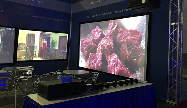 本次IFC16展會(huì)中,視美樂以五大展區(qū)展示其“智能激光投影”的實(shí)力,包括“106寸激光高亮系統(tǒng)”、“180寸寬屏融合優(yōu)化解決方案”、“120寸激光高亮系統(tǒng)”、“90寸激光點(diǎn)陣白板系統(tǒng)”