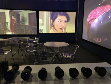 IFC China現(xiàn)場(chǎng),視美樂全線工程機(jī)及鏡頭也進(jìn)行了集中展示。視美樂擁有幾十個(gè)專利,僅僅是鏡頭方面的專利便多達(dá)數(shù)十種,視美樂長(zhǎng)短焦鏡頭品種多樣,適配于多個(gè)品牌的機(jī)型,如松下、索尼、愛普生、夏普、科視等。此次展出的全線工程機(jī)也都為視美樂2.5代工程機(jī),相比傳統(tǒng)2代工程機(jī)效果都有非常大的提升,整體亮度與色彩也都有較大提升,而且新光源的壽命也得到大大提升。從2016年下半年開始,視美樂全新2.5代機(jī)已實(shí)現(xiàn)量產(chǎn),屆時(shí)數(shù)十個(gè)產(chǎn)品將全面沖擊市場(chǎng)。