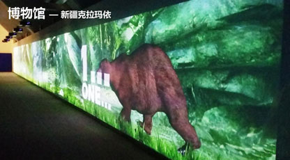 本項目通過1×12臺SML-SF400激光超短焦工程投影機融合,顯示畫面達22×1.5米用于展館內(nèi)的生態(tài)走廊展項。小于0.25:1的鏡頭在50CM內(nèi)打出120寸畫面。在有限的空間內(nèi)投射出大的畫面,超高的色彩表現(xiàn)力為展項增加生態(tài)的色彩。 |