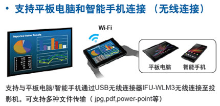 全線新品在保有以線纜連接電腦的傳統(tǒng)方式外,均具備“網(wǎng)絡(luò)發(fā)表功能”,即用無線網(wǎng)絡(luò),使8臺電腦同時連接一臺投影機,并支持4臺電腦同時投射畫面;不僅如此,通過使用特定的應(yīng)用程序,用戶可通過無線方式使其連接平板電腦、智能手機等掌上設(shè)備,且支持jpg、pdf、power-point等多種文件格式。課堂演示及日常會議中,使用者將大大減少線纜連接的繁瑣,同時避免隨身攜帶電腦的負(fù)擔(dān)。 |