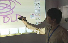 互動投影是DLP的又一項創(chuàng)新。對此,John R Reder介紹談到,利用DLP來實現(xiàn)交互投影,有很多優(yōu)點(diǎn):首先可以利用單一的投影,直接和投影的內(nèi)容做互動,不需要特殊的屏幕,而且任何一個表面都能夠達(dá)到互動功能。其次是不需要校準(zhǔn),方便使用,這利用了DLP的技術(shù)特點(diǎn)得以實現(xiàn)。第三是可以直接用筆在投影面上書寫,應(yīng)用距離可達(dá)10。遠(yuǎn)距離書寫可以令老師教學(xué)更加靈活,增強(qiáng)和學(xué)生的互動;油队白鳛槟壳笆袌龅臒狳c(diǎn)技術(shù)產(chǎn)品,正得到越來越多的關(guān)注。