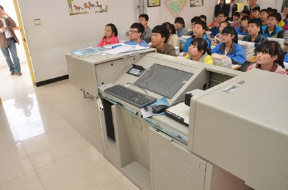 陳倉(cāng)高級(jí)中學(xué)秉承學(xué)校的教風(fēng),即愛(ài)心育人,開(kāi)拓創(chuàng)新,在教學(xué)中不斷尋求創(chuàng)新,以期真正實(shí)現(xiàn)一流的教學(xué)。在尋求創(chuàng)新的發(fā)展道路上,尤其值得一提的是學(xué)校最新采用的“無(wú)塵互動(dòng)教學(xué)系統(tǒng)”,目前已經(jīng)在高中的24個(gè)班級(jí)中部署了這套系統(tǒng)!捌鋵(shí),白板我們很早就應(yīng)用到教學(xué)中了,投影也是較早地就應(yīng)用于教學(xué)中了,但是,這套系統(tǒng)的核心之處則在于用無(wú)塵的方式實(shí)現(xiàn)了‘互動(dòng)’教學(xué)。老師不必拘泥于講臺(tái)那一小塊地方,也不再受粉塵的困擾,真正被解放出來(lái),可以更近距離地貼近學(xué)生!标悅}(cāng)高級(jí)中學(xué)一級(jí)教師孟衛(wèi)剛老師說(shuō)道。