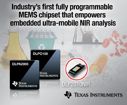 德州儀器(TI)(納斯納克代碼:TXN)在2015年匹茲堡展會(Pittcon)上宣布其近紅外(NIR)芯片組產(chǎn)品組合再添新成員--業(yè)界首款完全可編程微機電系統(tǒng)(MEMS)芯片組,支持700~2500nm波長范圍的超便攜光譜分析。