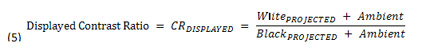 公式5顯示了環(huán)境光亮度對所顯示的對比度 (CRDISPLAYED) 的影響。