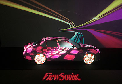 在展廳里,優(yōu)派還利用2臺(tái)PJD7333和3臺(tái)PJD8633ws組成了光雕投影方案,將原本是一臺(tái)全白色的泡沫車用光雕得動(dòng)感十足。這個(gè)方案可應(yīng)用于戶外展、大型櫥窗展等地方。同時(shí),展廳現(xiàn)場(chǎng)還呈現(xiàn)了通過(guò)亮度達(dá)800/600流明的LED投影機(jī)PLED-W800和PLED-W600投射而成的油畫/水族箱,其素材來(lái)源僅一張SD卡就能搞定,讓使用者可以隨心更換自己喜歡的畫面。LED投影機(jī)采用綠色環(huán)保的LED光源,更有30000小時(shí)的超長(zhǎng)使用壽命,非常適用于需要長(zhǎng)時(shí)間投影的海報(bào)機(jī)、櫥窗機(jī)等地方。