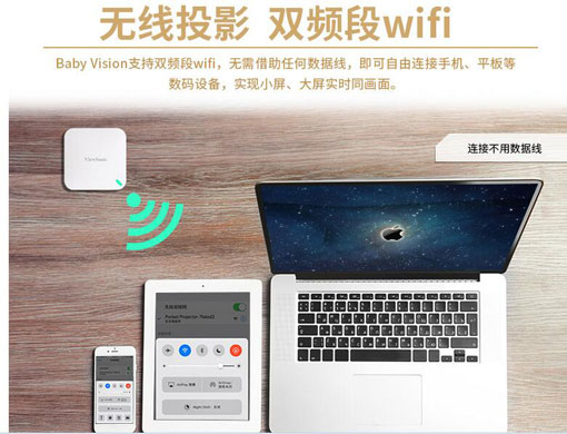 優(yōu)派Baby Vision支持雙頻段wifi,無需借助任何數(shù)據(jù)線,即可自由連接手機(jī)、平板燈數(shù)碼設(shè)備,實(shí)現(xiàn)小屏、大屏實(shí)時(shí)同畫面。同時(shí),鳥迷們按照提示操作,最多四步可將任意設(shè)備與同屏顯示,無需下載投屏軟件。Baby