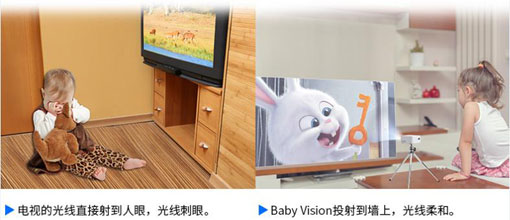 傳統(tǒng)電子顯示屏普遍是平行的直射光,光源直接射入人眼,長(zhǎng)時(shí)間注視屏幕會(huì)導(dǎo)致普通人眼干、眼澀等問題。作為智能投影的踐行者,優(yōu)派致力于將負(fù)面影響降到更低值,這其中就包含對(duì)視力的影響。Baby
