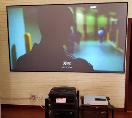 近200平米的體驗(yàn)現(xiàn)場(chǎng)配備優(yōu)派家庭娛樂系列新款PX727-4K投影機(jī),同場(chǎng)還展示了優(yōu)派100英寸激光電視LS820、Full