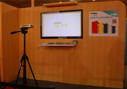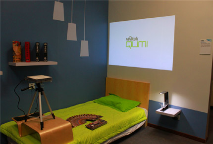 出了寬敞明亮的“客廳”進(jìn)入溫馨的“臥室”,Vivitek(麗訊)精彩的家用微投讓人眼前一亮,首先映入觀眾視野的是以“小身材,大視界”著稱的Vivitek(麗訊)跨界家用微投產(chǎn)品QUMI
