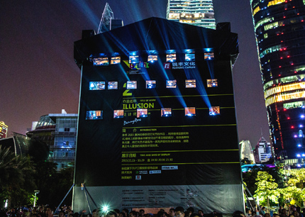 在2015澳洲動感悉尼燈光節(jié)上曾大放異彩的3D樓體投影作品《ILLUSION(幻象)》來到中國,于本屆廣州燈光節(jié)重現(xiàn)。在花城廣場圖書館西面外墻,設計師利用樓體投影的形式,將原作品與燈光節(jié)主題元素結合打造樓體39m*39m和