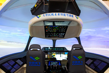 2016年6月1日—6月7日,國家“十二五”科技創(chuàng)新成就展在北京展覽館隆重舉行,本次展覽以“創(chuàng)新驅(qū)動發(fā)展,科技引領(lǐng)未來”為主題,重點(diǎn)展示“十二五”以來的重大科技成果和重要工作進(jìn)展。在大型飛機(jī)專項展區(qū),最吸引人的當(dāng)屬中國商飛公司首次向公眾展示新開發(fā)的“大型民用飛機(jī)未來智能駕駛艙”。和傳統(tǒng)的飛機(jī)駕駛艙不同,智能駕駛艙沒有密密麻麻的按鈕、旋鈕和開關(guān),有的只是超大觸摸屏、激光投影機(jī)、語音感知系統(tǒng)等“高科技”裝備,其中Vivitek(麗訊)用3臺DU8090Z激光工程投影機(jī)打造的仿真模擬飛行環(huán)境則是整個智能駕駛艙的重要組成部分。