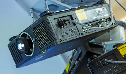 3臺Vivitek(麗訊)DU8090Z激光工程投影機(jī)被安裝在飛機(jī)駕駛艙頂部