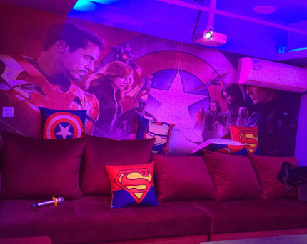 觀影環(huán)境是消費者體驗的重要部分,影吧設(shè)計者為影吧包間和大廳搭配了不同色彩照明,打造了明亮鮮艷的動畫小黃人、浪漫星空下的咖啡大廳、陽春三月下的野營等各具特色的環(huán)境氛圍,達(dá)到了“私人訂制”的效果。影吧根據(jù)五個風(fēng)格不同的包廂,設(shè)置了不同的硬件配置。從5.1聲道100吋大熒幕到7.2.4全景聲配上120寸大幕,觀感截然不同,對于消費者而言,無論是情侶約會或者朋友聚會,每次都有截然不同的體驗。