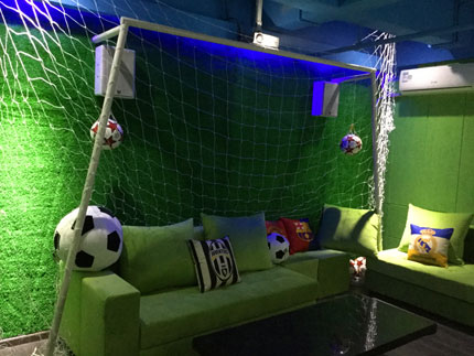 在足球主題包間可與球迷為心愛的球隊吶喊助威