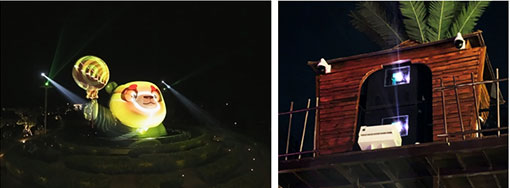 PH3501QL+雙色激光工程投影機所擁有的DCI影院級色彩更是為投影秀帶來無限可能,高色域表現(xiàn)輕松呈現(xiàn)更加豐富的色彩,塑造的熊貓卡通影像美輪美奐,讓親子度假游更精彩。
