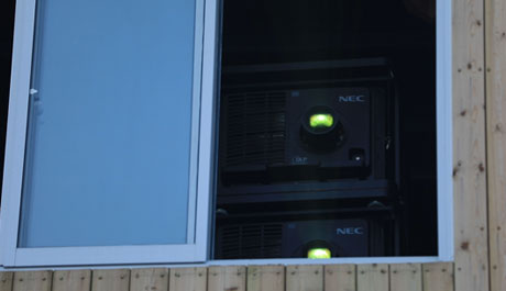 碧螺塔作為整場(chǎng)表演的主視覺,位置突出,承擔(dān)著重要角色,不容閃失。塔面的投射任務(wù)由多臺(tái)NEC