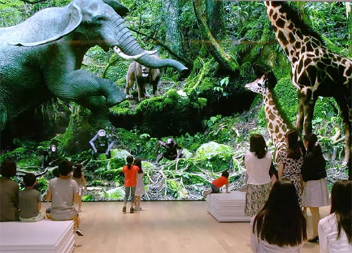 東京索尼PCL的專業(yè)數(shù)字媒體制作團隊與資生堂緊密合作,為創(chuàng)紀錄的S/PARK拼接大屏制作了令人驚嘆的16K分辨率CGI視頻。大象、長頸鹿、獅子,以及由演員扮演的猿猴,在日本茂密、永恒的屋久島森林中翩翩起舞,鯨魚、海豚和企鵝則神奇地在開闊的天空中游弋。