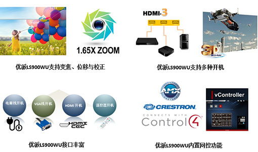 優(yōu)派LS900WU內(nèi)置網(wǎng)控功能,在同一局域網(wǎng)中可通過IP地址訪問投影機(jī),對(duì)投影機(jī)進(jìn)行開關(guān)、信號(hào)源選擇、參數(shù)調(diào)整等一系列操控遠(yuǎn)程控制。優(yōu)派LS900WU配套vController中控軟件,使用電腦通過局域網(wǎng)可對(duì)投影設(shè)備進(jìn)行遠(yuǎn)程管理,通過AMX&快思聰網(wǎng)絡(luò)管理可對(duì)多達(dá)256臺(tái)投影機(jī)進(jìn)行管控,實(shí)現(xiàn)投影機(jī)集約化資產(chǎn)管理,狀態(tài)掌控,緊急情況發(fā)布,按日程開關(guān)機(jī)等。優(yōu)派LS900WU兼容PJ